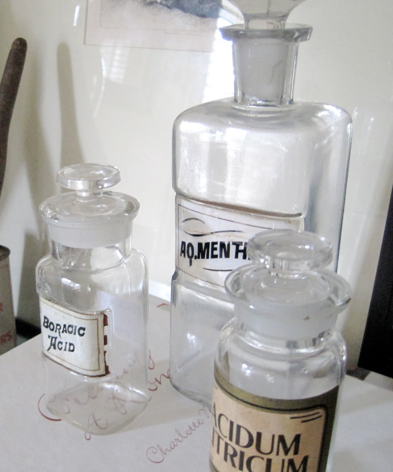 Here are the old apothecary bottles I picked up at the flea market a while back.